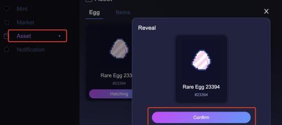 每個Twitter賬號最多可同時持有10個egg,每個賬號可免費mint一個「常見」egg,「稀有」egg只能在Market購買,初始價格為0.1E,每售出1000個價格上漲5%,目前價格為0.134E