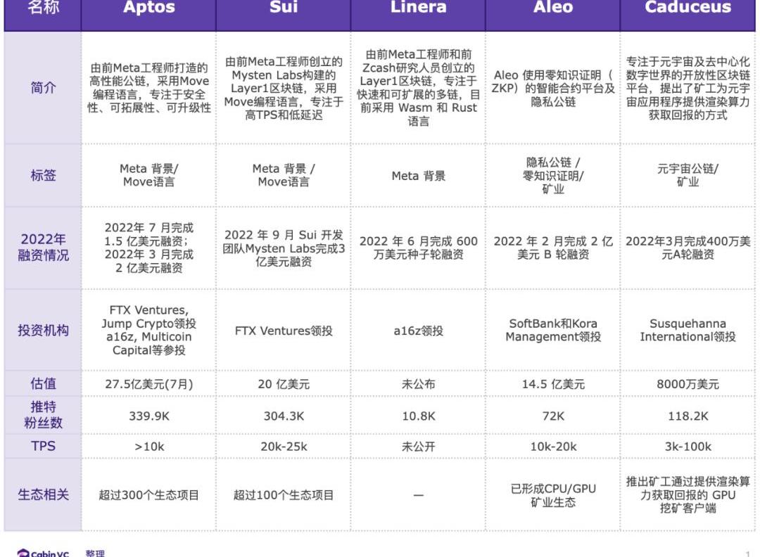 但同時,該賽道淘汰率極高,從當前市場需求來看,DeFi、NFT等概念及應用的快速發展,一直在對公鏈提出更高的要求。隨著以太坊合并塵埃落定,L2賽道加劇公鏈之爭,新公鏈及次新公鏈需要以不同的結構邏輯及應用場景進行構思。這一賽道仍然充滿更多可能。Cabin整理了2022年獲得融資的L1公鏈項目,并從中做出總結: