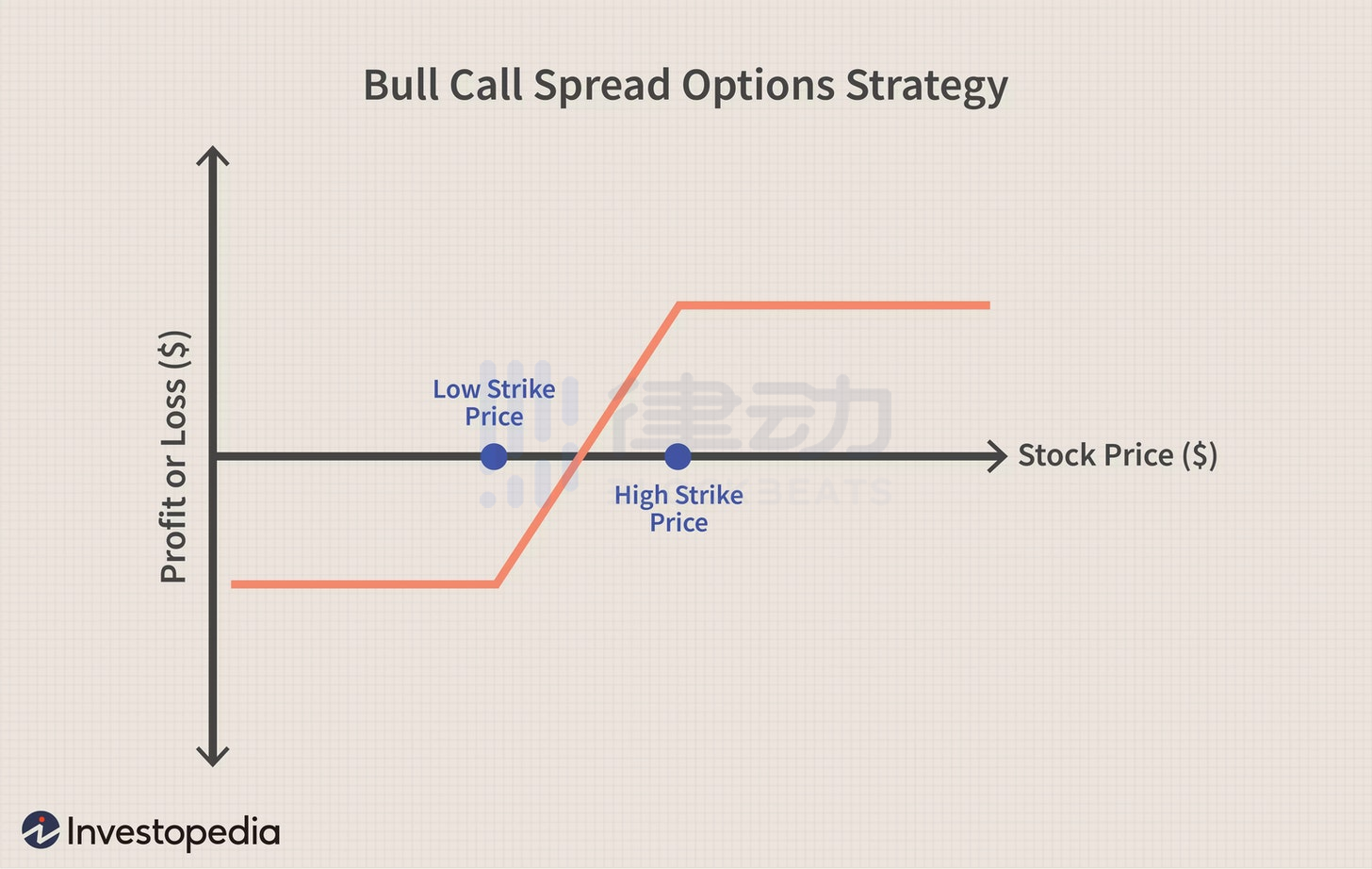 牛市看漲價差,這表示以特定的行權價買入看漲期權,并以較高的行權價賣出相同數量的期權,兩種期權的到期日和標的相同。看漲期權價差降低了看漲期權的成本,但它同時也限制了策略的收益。