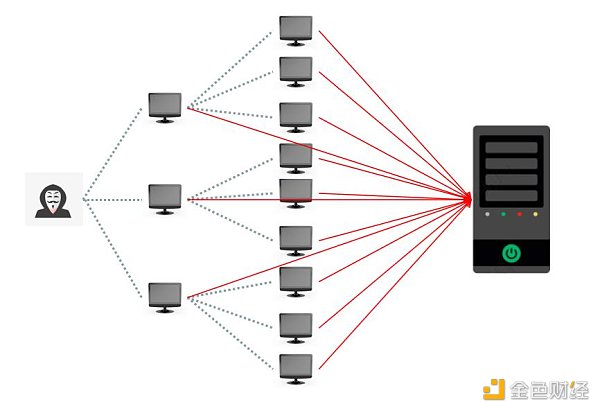 2020 年各個領域 DDoS 攻擊事件中,主要是針對于各個 中心化交易平臺發起的。DDoS 攻擊名為分布式拒絕服務 攻擊,是指攻擊者通過技術手段控制多臺傀儡機,通過這 些傀儡機,攻擊者可以向某個或某些網絡目標構造并發送 大量請求,這將導致目標主機性能或網絡帶寬消耗殆盡, 使得受害系統無法正常運行并且無法對外提供服務。DDoS 攻擊比普通 DoS 攻擊更具有破壞性且更難防范。