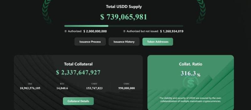 USDD僅由$TRX以1:1的比例鑄造,并且僅由白名單會員鑄造。但TronDAOReserve聲稱,USDD以293%的抵押比率得到其他加密資產的支持。