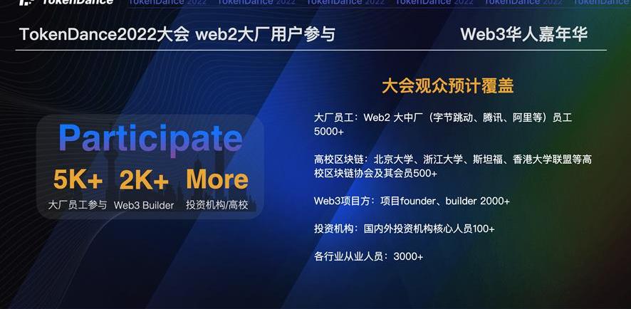 在這樣嚴峻的背景下,我們希望看到Web3的現象級應?產?,當然這個偉?的愿景需建?在對市場與?戶的敏銳洞察上。因此TokenDance2022將承擔重任,引領Web2大廠中高層和Web3builder嘉賓進行理念的碰撞、展開關于未來想象空間的討論,將前者對市場用戶的理解,與后者對技術和理念的深刻認知結合,集思?益、共同探索、觸摸未來。