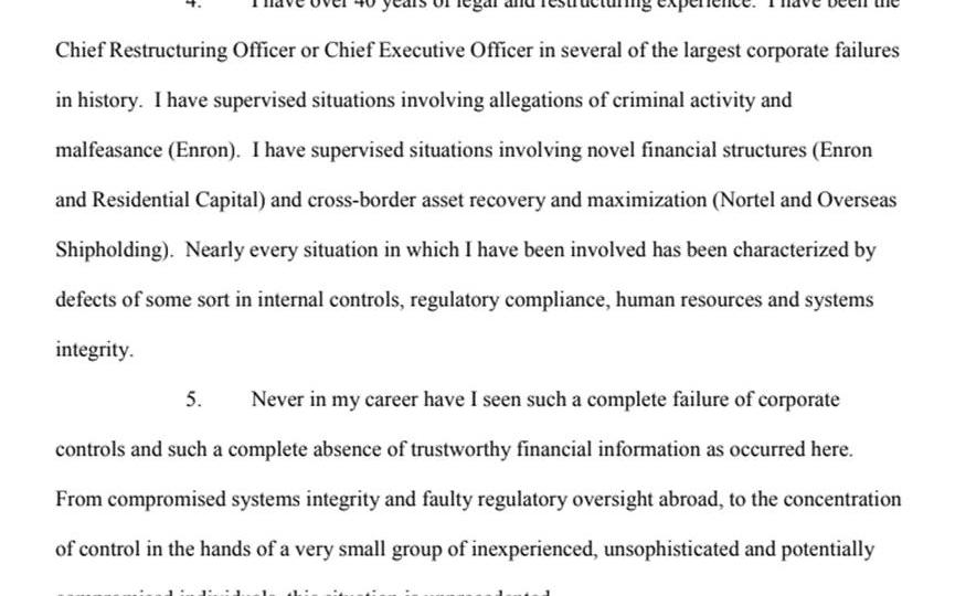 在得出我精辟的結論之前,請讀一讀破產的“死星”——FTX的新任CEOJohnRay的話:
