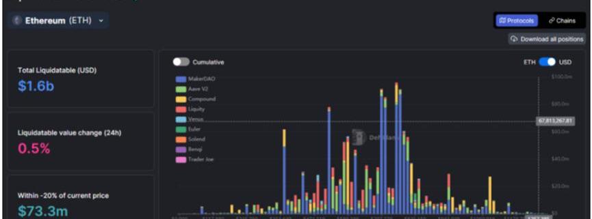DeFiLlama的清算管理頁面是一個非常寶貴的工具,用于分析DeFi領域的債務倉位的純粹價值,即使是ETH,目前也有超過16億美元用于借款。在這方面,DeFi的偉大之處在于其數據的透明度和可組合性,我們能夠清楚的確定重要質押資產可能被清償的價格點,并分析各種貸款協議的特定倉位。
