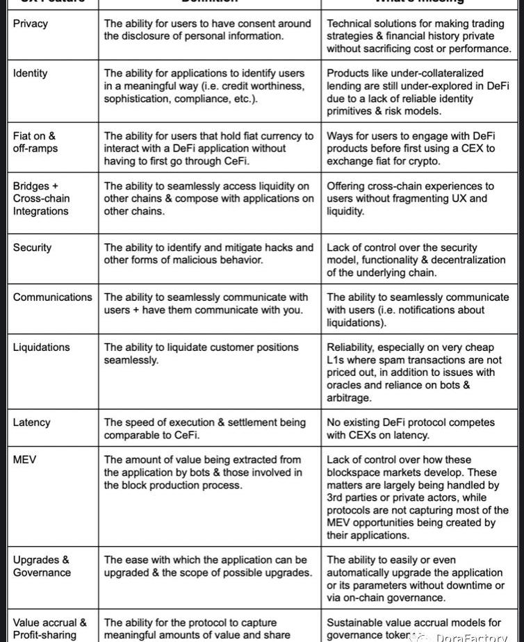 這份清單并不詳盡,但它確實開始描繪出DeFi應用程序需要做多少事情才能真正有機會與CeFi競爭。以下部分將重點介紹一些正面解決其中一些問題的DeFi應用程序鏈。