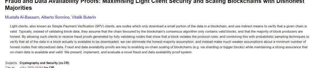 欺詐/有效性證明的發明打破了這一可擴展性瓶頸,它們讓輕節點可以驗證區塊中的交易是有效的,具備與全節點幾乎相同的安全保證,同時消耗更少的資源。