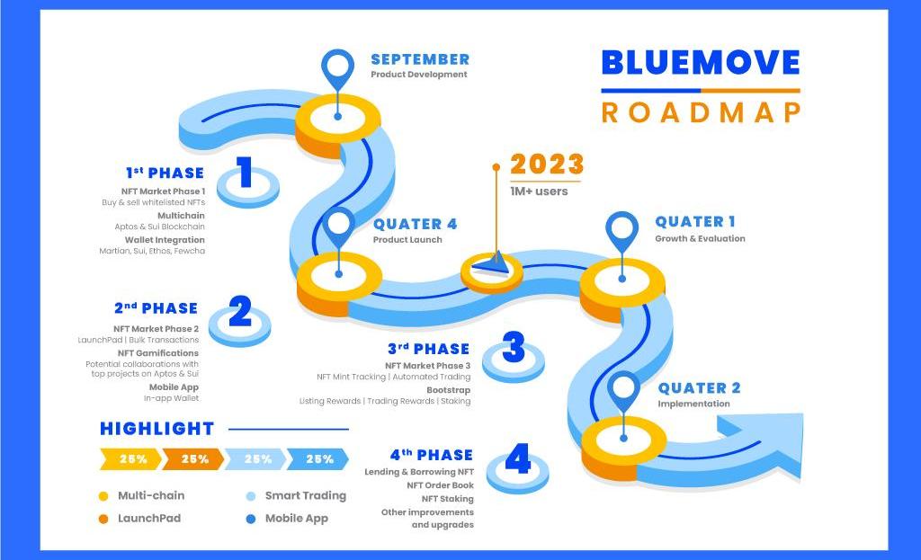 BlueMove是Aptos和Sui區塊鏈中最大的NFT市場。也是社區最擁擠的基于Move生態的dApp。根據路線圖顯示,2023年會推出NFT鑄幣廠追蹤和自動交易功能。近期,BlueMove為紀念超過推特關注超過50k,開展申領“BlueMove50kAnniversary”NFT活動,市場熱度較高。項目官網:https://bluemove.net/