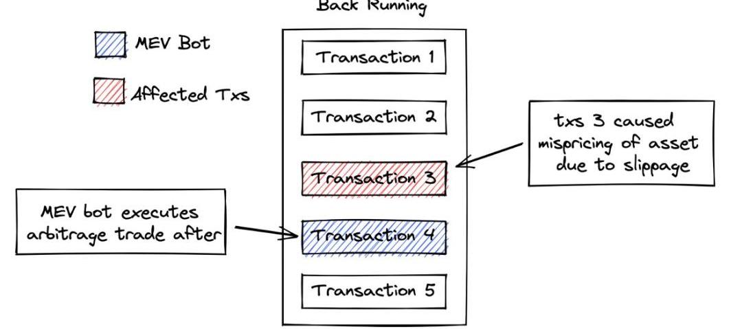 這就是所謂的尾隨交易,這種情況下,開采區塊中的交易順序如下所示: