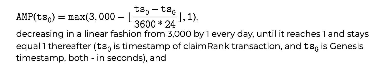可以看到,越早參與,可以獲得到的?AMP?就越多,最開始一天是?3000,每過一天會減少?1,最終超過3000天就會恒定為?1。