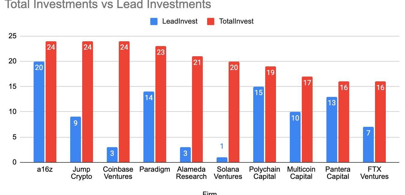 首先,在總投資額方面,a16z一騎絕塵,且在24輪融次中,領投20次。