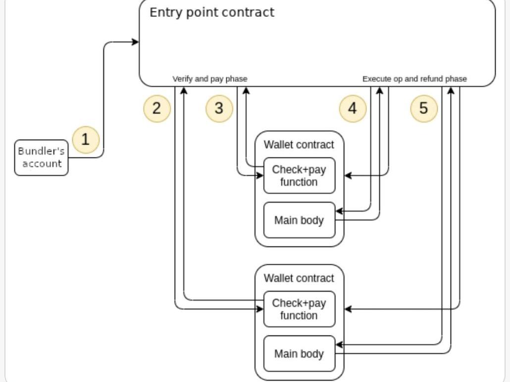 1-Bundler將tx路由到一個全局“入口點”智能合約。