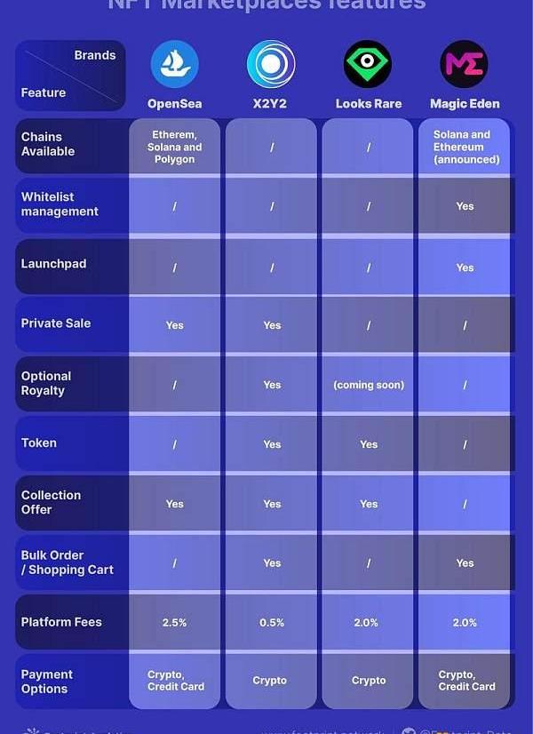 隨著NFT行業的發展,用戶可能會選擇幾個強大的市場選項,每個選項都有自己的優缺點。