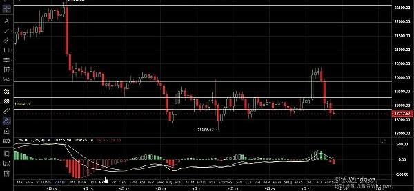 比特幣昨日白盤大幅拉升,高位觸及20380一線承壓,夜盤又迅速回落,前期文中提示過,像畫門行情這種支撐大多都是無效的,所以多單直接放棄,早間行情再次下跌最低至18477一線,小時級別空頭縮量暫時止跌反彈,布林帶整體下移行情在中下軌運行,目前處于大跌之后行情震蕩修復階段,短期多空方向并不明朗,四小時級別行情觸及布林帶上軌走出四頂連陰回落,直接跌至布林帶下軌支撐,macd多頭轉空雙線死叉,四小時收線在18600上方,說明這個支撐還是有效的,不可盲目看空,日內思路建議高空低多,19000-19300空,目標18600-18100破位持有,17750多,目標18300-18700