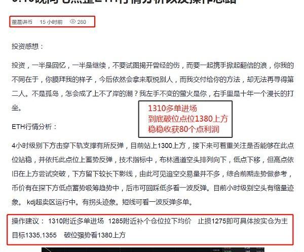 XRP/HKD-0.55%昨天晚間給出的ETH思路是完美的,預測是直接1310附近多單進場,而結果與我預測完全一致,把行情掐死在計算當中,行情漲至1390附近,收獲80多點利潤。恭喜敢跟上董晨一起的客戶,夠貪,有膽,一直相信董晨的朋友讓我們一起走向共贏的局面。?