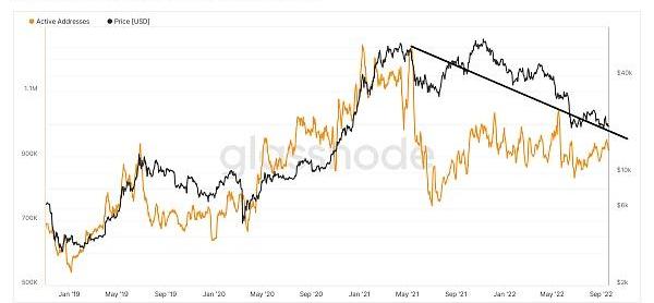 然而,地址的數量在過去一個月一直在增加,并且非常接近到達背離的下降阻力線。持續上漲可能意味著下跌趨勢已經結束。