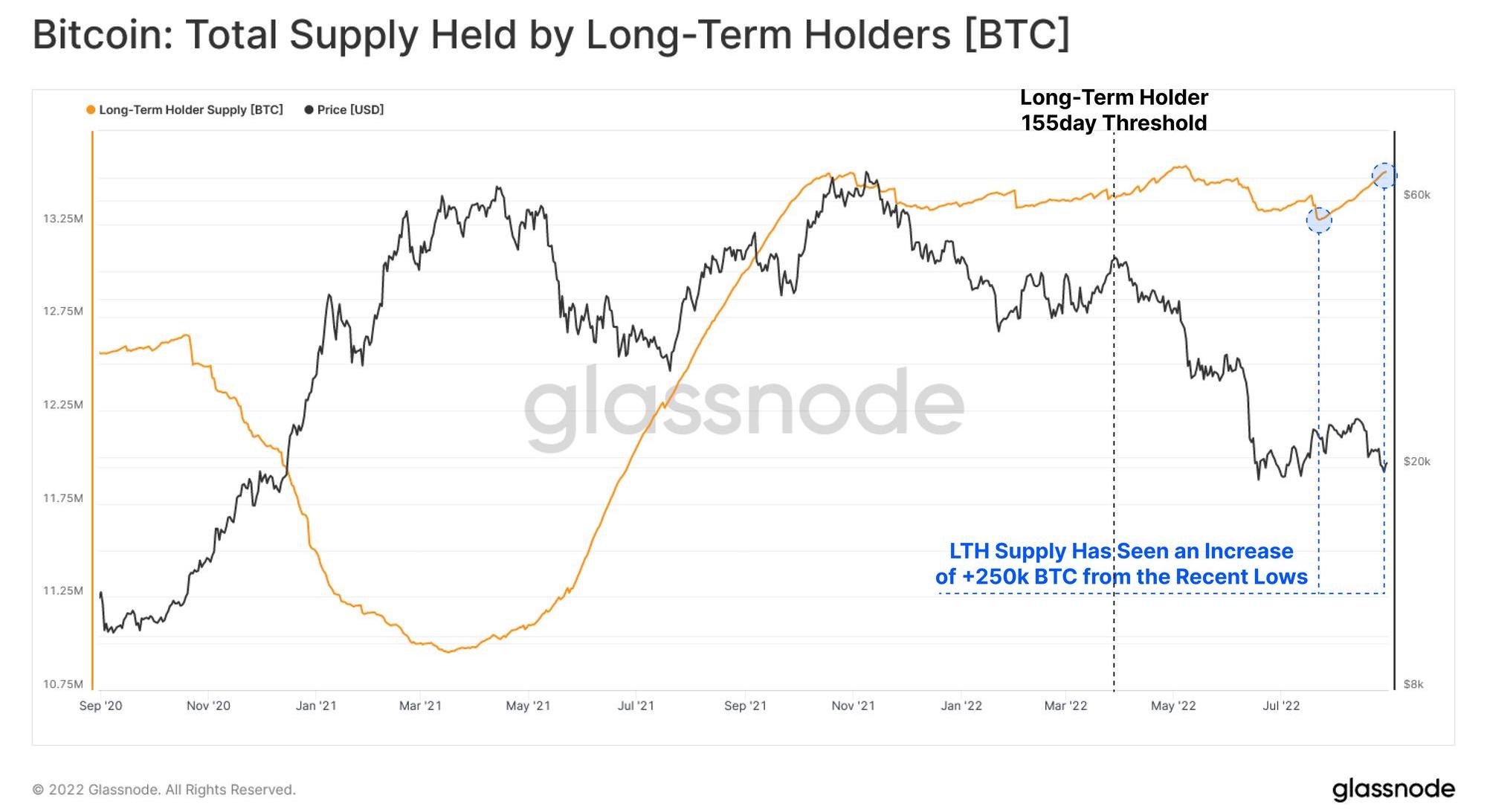 從2021年下半年至今,HODLer的積累已經平衡了這一拋售階段。目前,我們看到每月7萬比特幣的頭寸增長,這是自2020年3月以來HODLer頭寸增長最大的一個月。