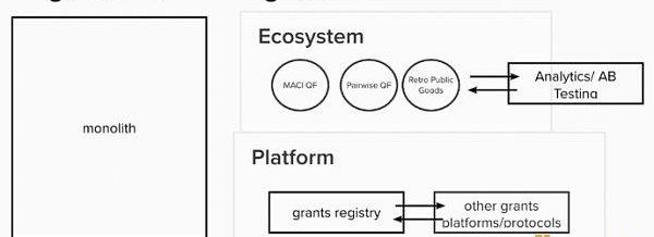 Grants2.0將包括一個「生態系統」和一個「平臺」。生態系統可視為一套開源資金和治理機制,平臺由dApp、通用項目注冊表前端GrantsHub、資助輪管理器RoundManager等組成,讓任何社區都能啟動和管理他們自己的自托管資助輪。