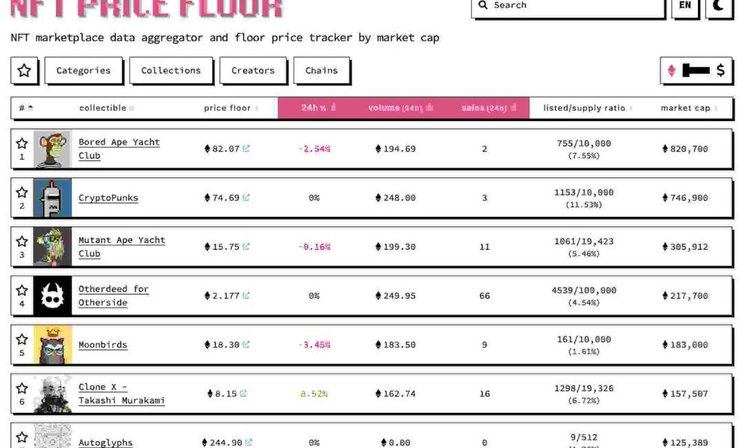 截至2022年8月,底價最高的NFT藏品無疑是BAYC,為84.19ETH,接近137,000美元。