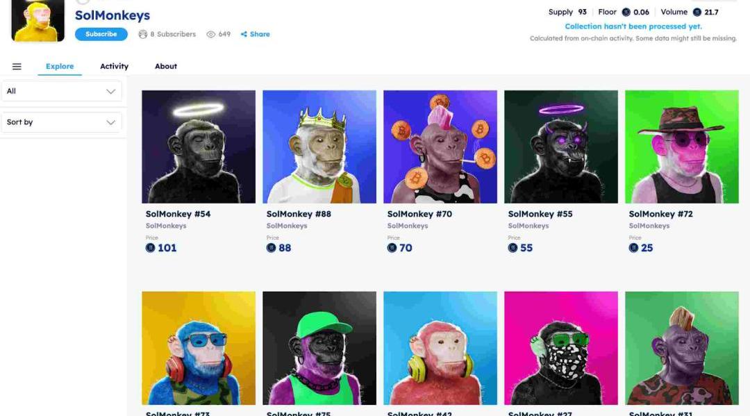 目前,大多數著名和昂貴的NFT,包括CryptoPunks和BoredApeYachtClub在內,都是在以太坊區塊鏈上鑄造的。例如,以太坊NFT單價最高的銷售已達數千萬美元,但迄今為止最昂貴的SolanaNFT售價則為200萬美元。2022年1月,SolanaNFT的銷售額終于突破了10億美元,這對于Solana來說是一個具有里程碑性的數字,但還是與以太坊的銷售相差甚遠。