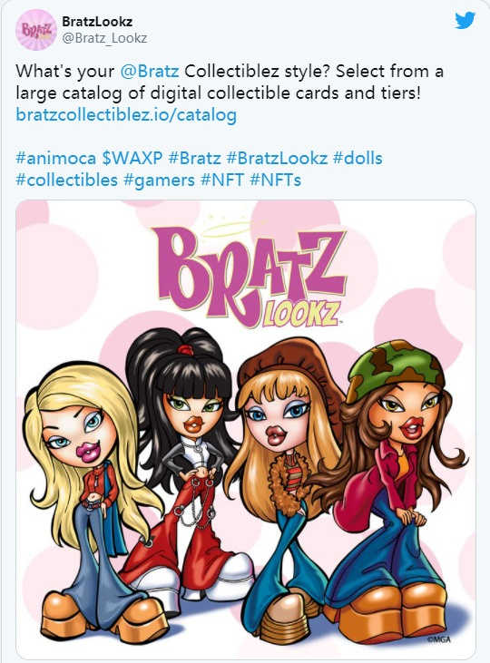 Animoca Brands 已獲得 MGA Entertainment Inc. 集團的“布拉茨娃娃”許可,以創建和發布與著名玩偶相關的游戲以及一系列 NFT。去年十二月,這些“NFT 娃娃”已經以收藏卡的形式被創建,其中最稀有的“Shimmerin” NFT 可以兌換實物娃娃玩偶。