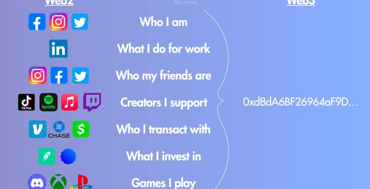 換句話說,「我」是我當前行為模式的總和,人類行為模式決定了個體的身份。Web2社交平臺是斷層的,每個媒介的社交資料都無法互通;但Web3給出了解答。DID串起了鏈上、可追蹤的一個個行為,指向一個存儲在區塊鏈的唯一標識符,人類的喜好、財產、經驗、聲譽等豐富了標識,并能與任何DApp進行互通。