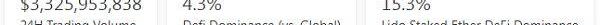 2.過去24小時去中心化交易所的交易量33.2億美元