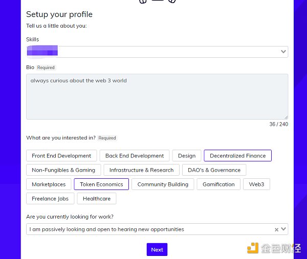 「I'm also an organization manager looking for a great community.」這項一般不選,如果選了需要填更多的資料,相對比較麻煩,當然,如果需要更新,可以后續再填。完成這一步,這個Gitcoin賬戶就可以使用了。