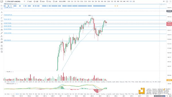 區間盤整,持續消磨1880一帶阻力,后續一旦突破,下一阻力就是前頂2040壓制,支撐1700、1660美金,預計整理后繼續上攻概率大。