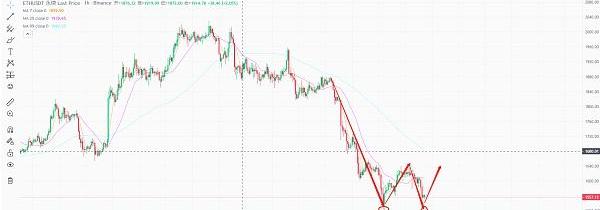 ETH今日回踩最低1530,小時線來看形成了雙底,這里買盤還是比較多的,價格反彈也比較明顯。
