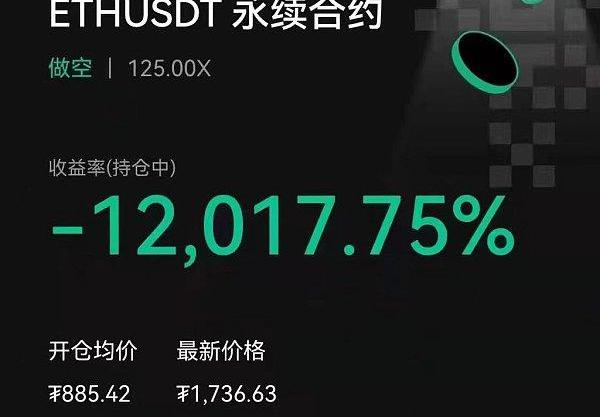 比如這個朋友在以太坊885時開空了,當時市場下跌,大部分人情緒沮喪,甚至看跌到500。但市場不按照玩家情緒走向,從885后一路漲到今天1885,翻倍也只用一個多月的時間。