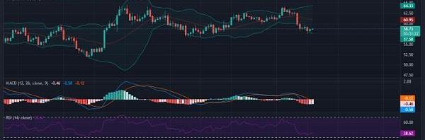 布林帶在過去幾天一直很窄,但現在顯示出背離,因為價格突破了60.00美元大關。不斷擴大的區間表明,短期圖表上的價格波動性增加。該指標的底線目前在57.58美元關口提供支撐,而均線則在60.95美元處提供阻力。